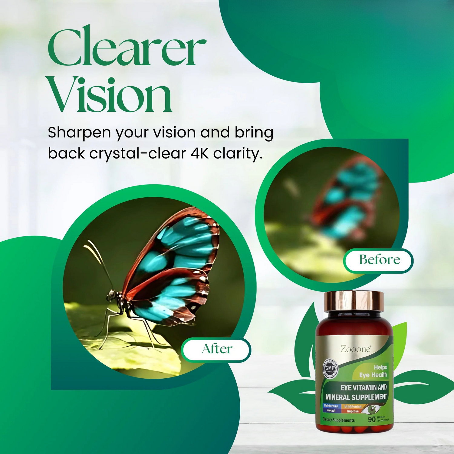 Great question! Unlike generic multivitamins, Zooone is specifically formulated for eye health using clinically studied ingredients like lutein, zeaxanthin, and antioxidants that have been shown to reduce eye strain, improve clarity, and support long-term vision health. Many customers notice improvements in dryness, strain, and night vision within a few weeks. And if you don’t? We stand by our product 100%.